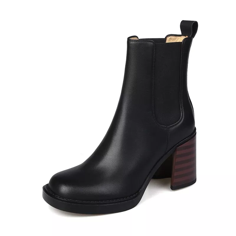 What sets these boots apart is their blend of timeless style, comfort, and quality craftsmanship. Made from genuine cow leather, these boots are durable and designed to last through the seasons. The round toe design offers a comfortable fit, while the square heel adds stability without compromising on elegance. The short plush lining ensures that your feet remain warm in winter, while the rubber outsole provides superior traction. The elastic band closure makes them easy to put on and take off, making these boots the ideal choice for women on the go. Whether you’re heading to the office, running errands, or enjoying a night out, these boots will keep you stylish and comfortable.