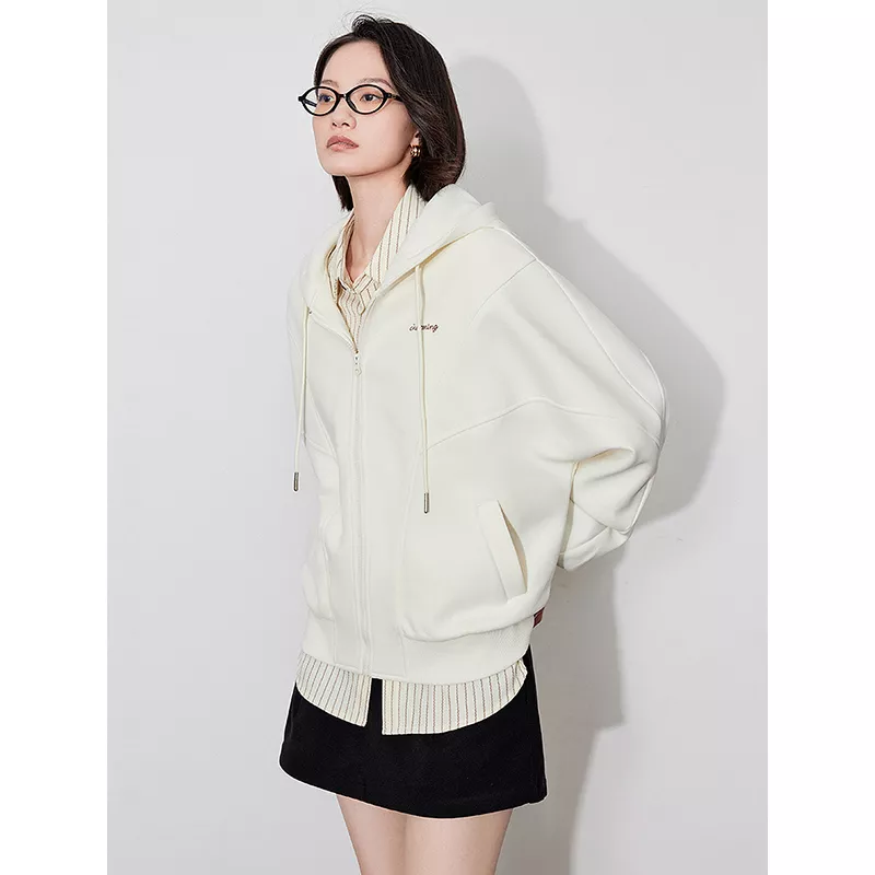 Letter Embroidery Zipper Hooded Casual Jacket Coat for Women