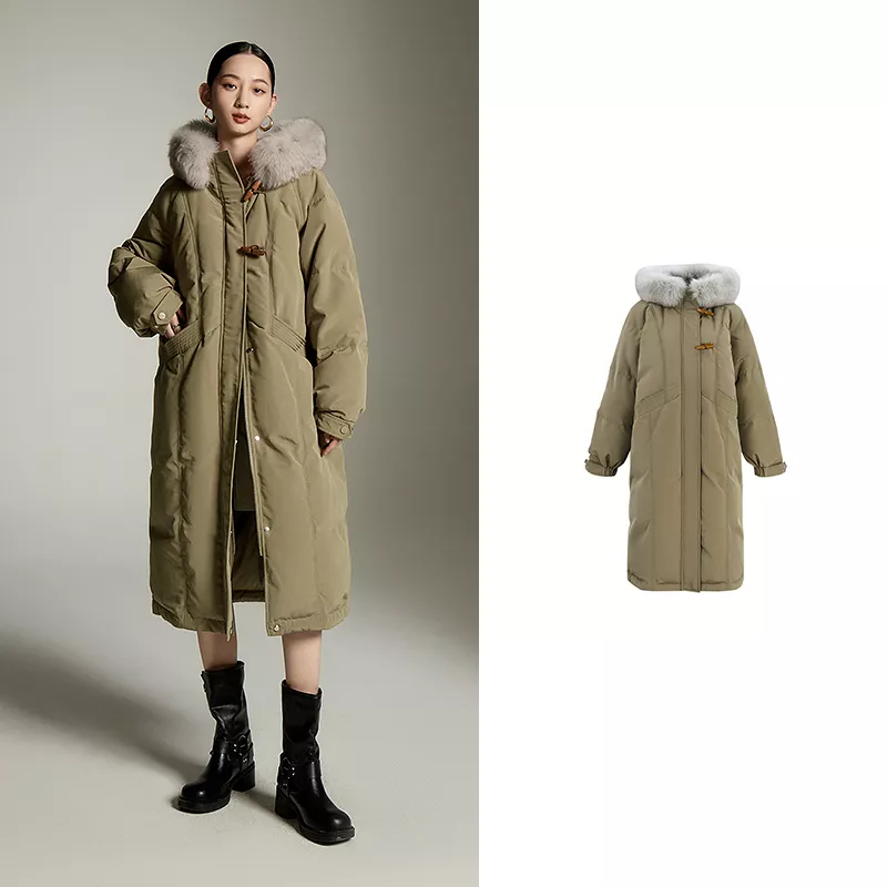 Step into winter with confidence and style wearing this stunning Long Hooded Duck Down Coat. Designed for warmth, comfort, and trendsetting appeal, this overcoat is the perfect companion for those chilly days. With its luxurious fox collar, thick padding, and chic green color, this coat is a blend of fashion and functionality that will elevate your wardrobe while keeping you snug.