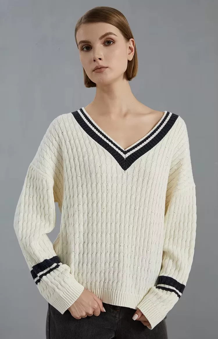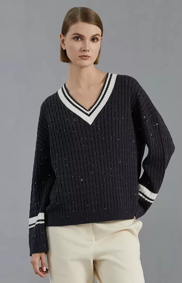 Designed for women who appreciate both style and practicality, this sweater is perfect for anyone looking to update their wardrobe with something both luxurious and comfortable. The V-neck adds a touch of elegance, making it easy to dress up or down. Pair it with jeans for a casual look or with a skirt for a more polished ensemble. It’s versatile, cozy, and easy to wear throughout the fall and winter seasons.