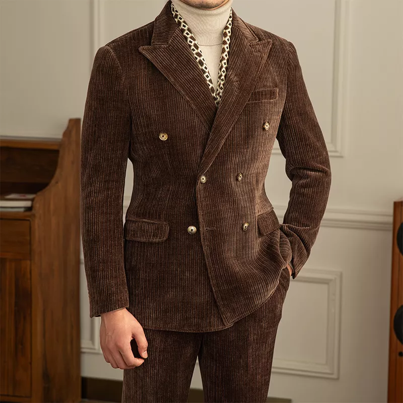 Step into a world of sophistication with this double-breasted chenille velvet suit for men. Perfectly designed for banquets, weddings, and other formal occasions, this tuxedo combines timeless style with modern luxury. The refined pit stripe chenille velvet fabric ensures you stand out with unmatched elegance, while the England-style design adds a touch of classic charm. Ideal for autumn and year-round wear, this suit is a must-have for the discerning gentleman.