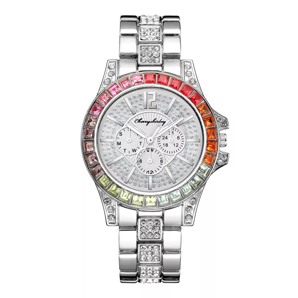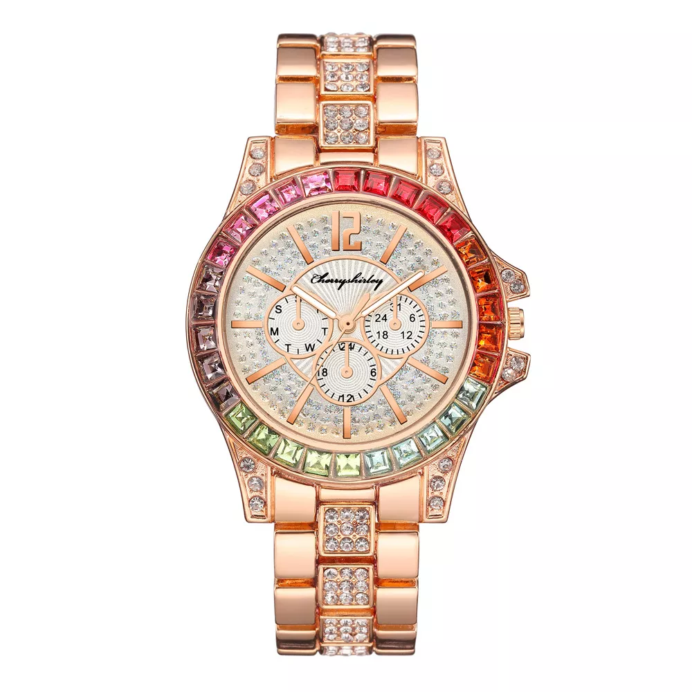Experience a perfect blend of sophistication and modern flair with this luxury women’s stainless steel watch. The radiant gold-tone strap and vibrant colorful diamond accents on the dial create a stunning centerpiece for your wrist. Whether you’re at a formal event or enjoying a casual day out, this watch is your ultimate fashion statement, enhancing your style with every tick of the second hand.