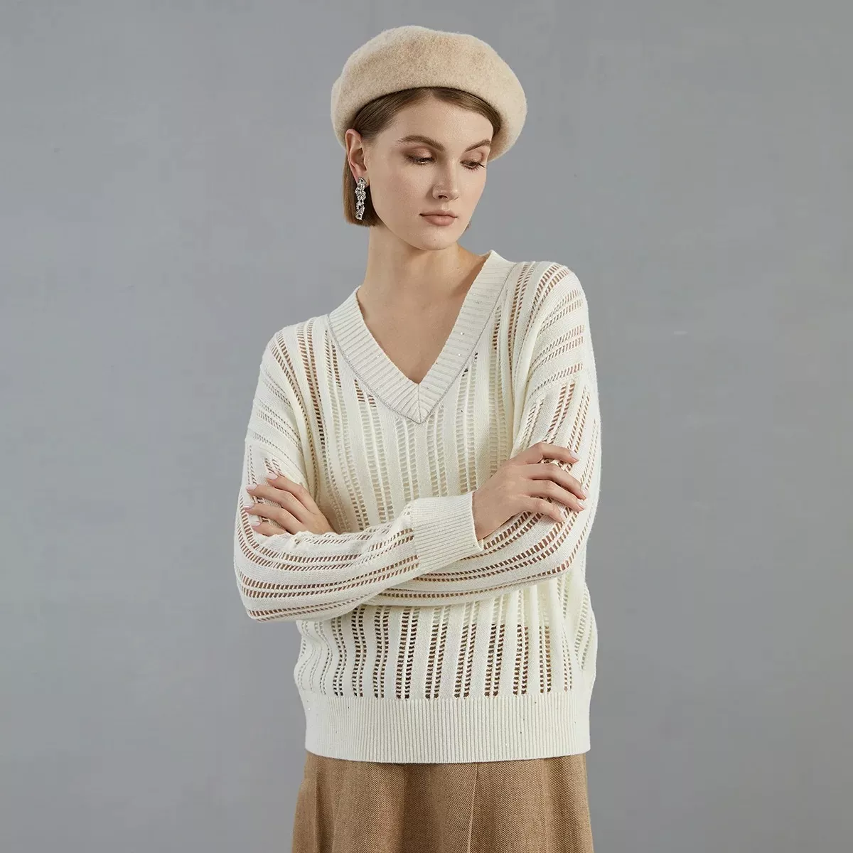 Wrap yourself in unparalleled luxury this winter with this 100% wool V-neck sweater. Designed for both warmth and style, this thick pullover is the ultimate wardrobe essential for chilly days. The loose, relaxed fit and high-stretch knit make it not only incredibly comfortable but also effortlessly chic. With its classic solid color and elegant V-neckline, this sweater adds sophistication to any outfit, whether you’re dressing up for a cozy evening or layering for a casual day out.