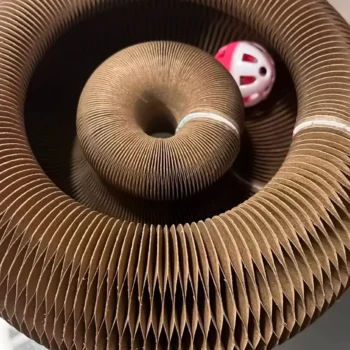 My cats are absolutely in love with this scratch board. It’s more than just a simple scratch post—it’s their new favorite playground! The corrugated surface is ideal for their claw grinding needs while the bell toy keeps them engaged and entertained. I particularly appreciate its foldability which makes it easy to store when needed, and being able to connect two boards together provides even more space for them to roam around.