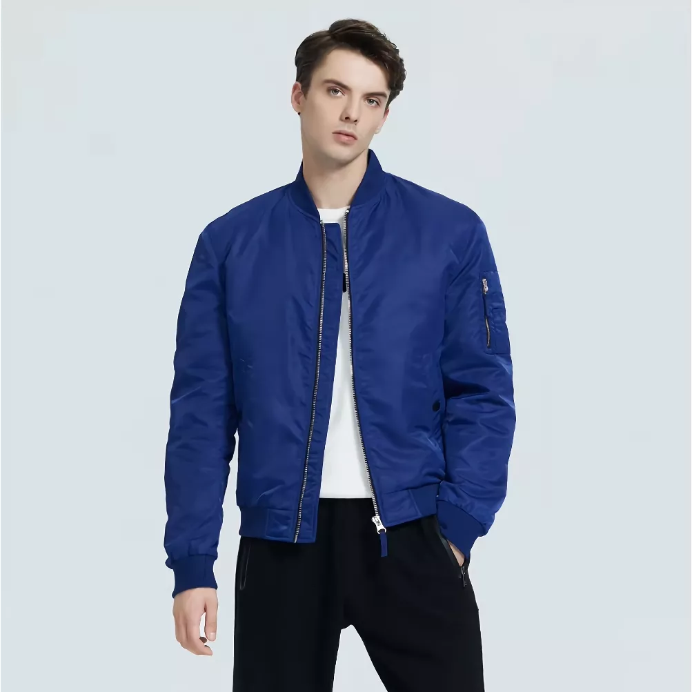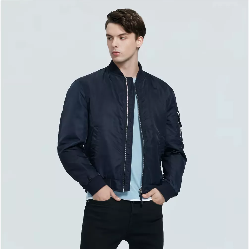 This men’s casual flight jacket is more than just a stylish outerwear option—it’s an everyday essential. The slim fit design is flattering on all body types, while the lightweight fabric ensures you stay comfortable all day long. The sleek, minimalist details, such as the collarless neckline and zipper decorations, set this jacket apart from others. It’s designed to complement your casual wardrobe, making it a versatile piece you can rely on season after season.