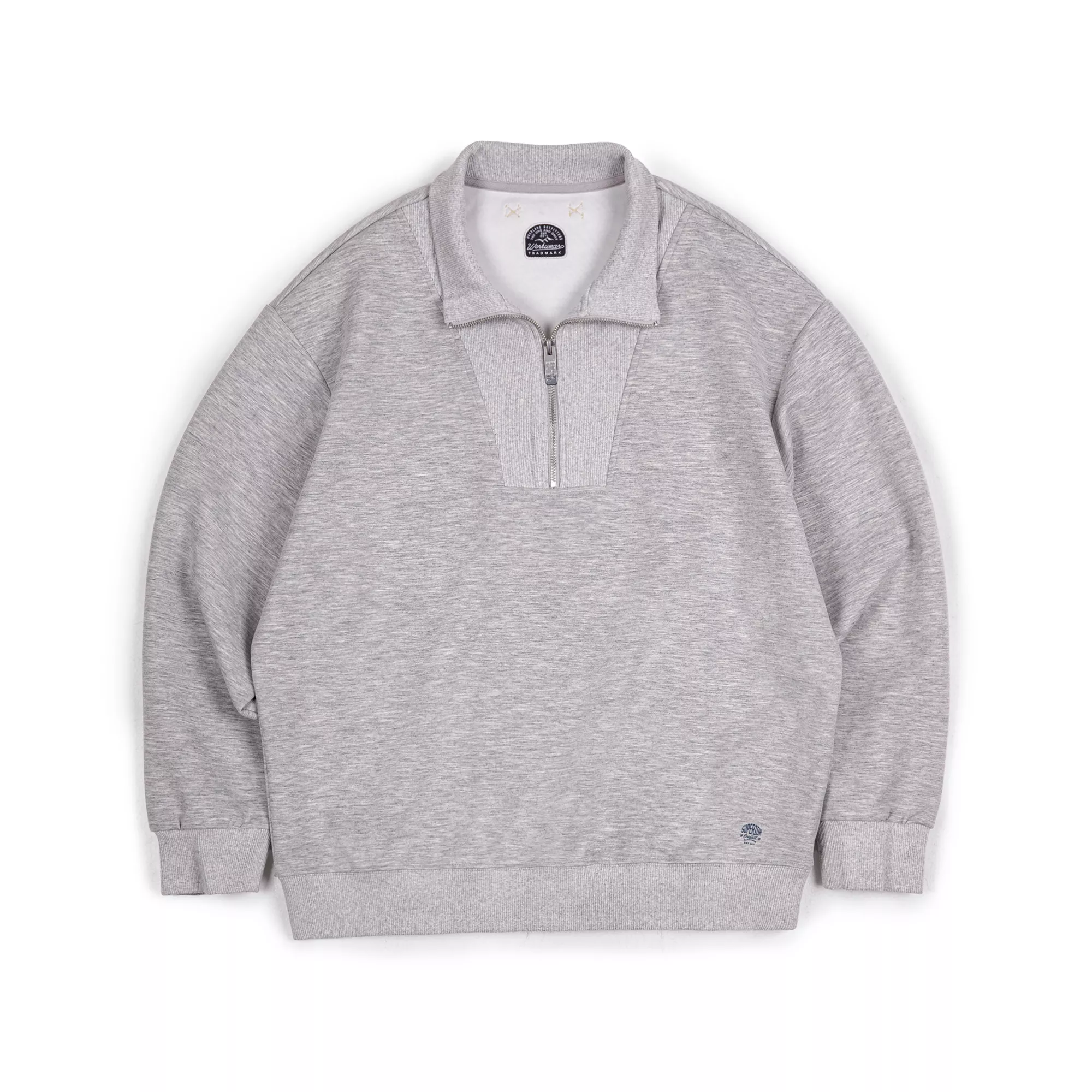 Men’s Casual Gray Pullover Sweatshirt with Patchwork and Standing Collar