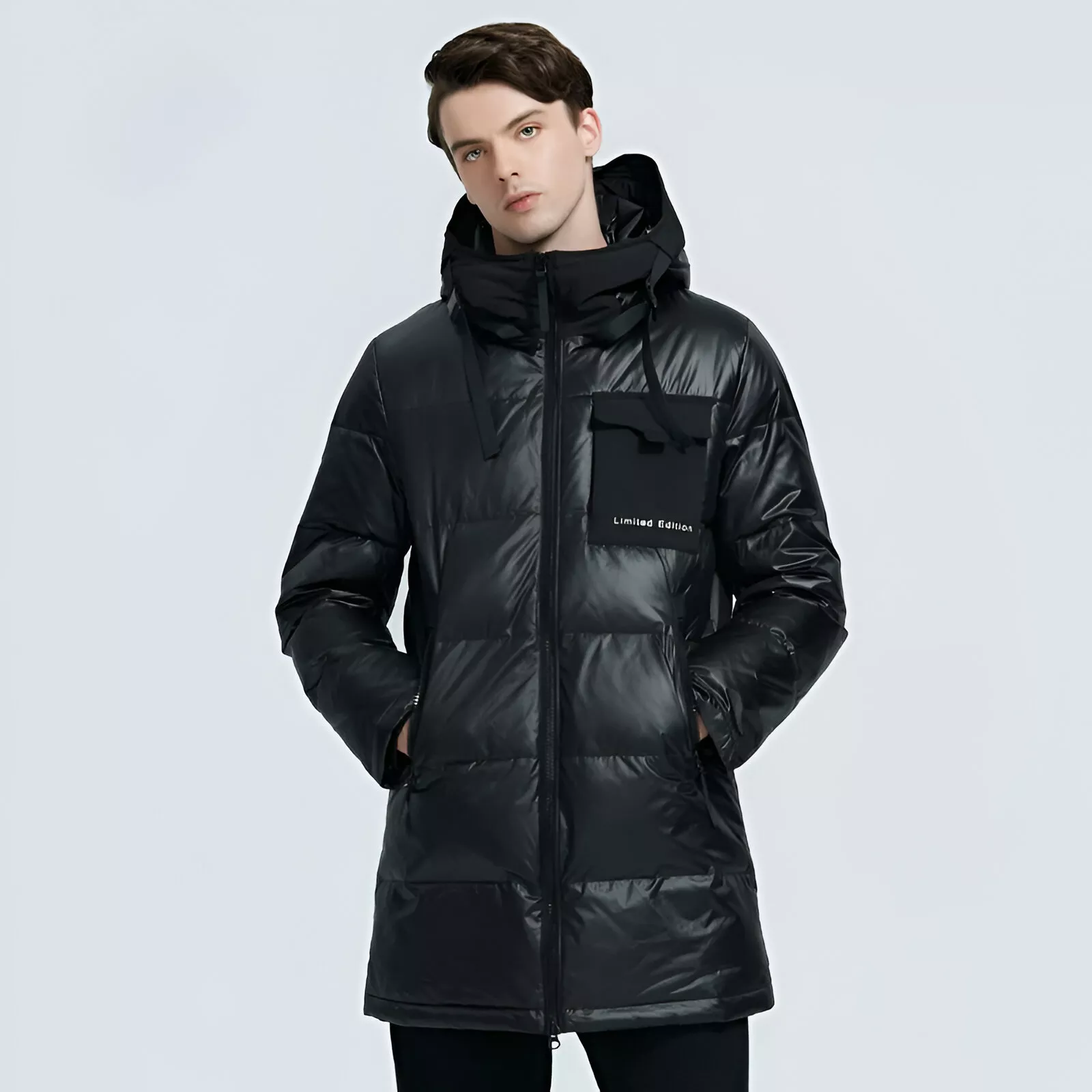 Designed for men who appreciate style and functionality, this jacket is a must-have for winter. Its thick insulation and hooded design ensure maximum warmth, while the sleek, solid-color finish complements any outfit. Lightweight at just 1.38kg, it’s comfortable to wear all day without feeling bulky. Pair it with jeans, boots, or sneakers for a versatile and polished winter look.