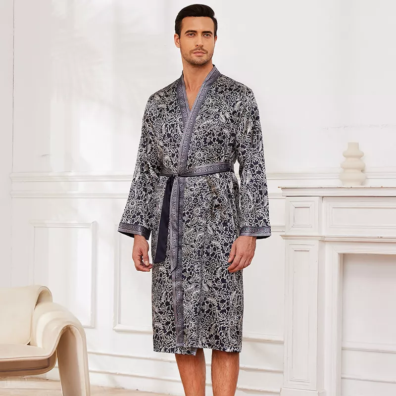 Designed for men who appreciate sophistication and relaxation, this kimono-style robe features a loose fit, long sleeves, and a classic V-neck collar. The eye-catching print adds a touch of personality, while the accompanying belt allows for a customized fit. Perfect for spring and summer, its lightweight and breathable fabric ensures you stay cool and comfortable.