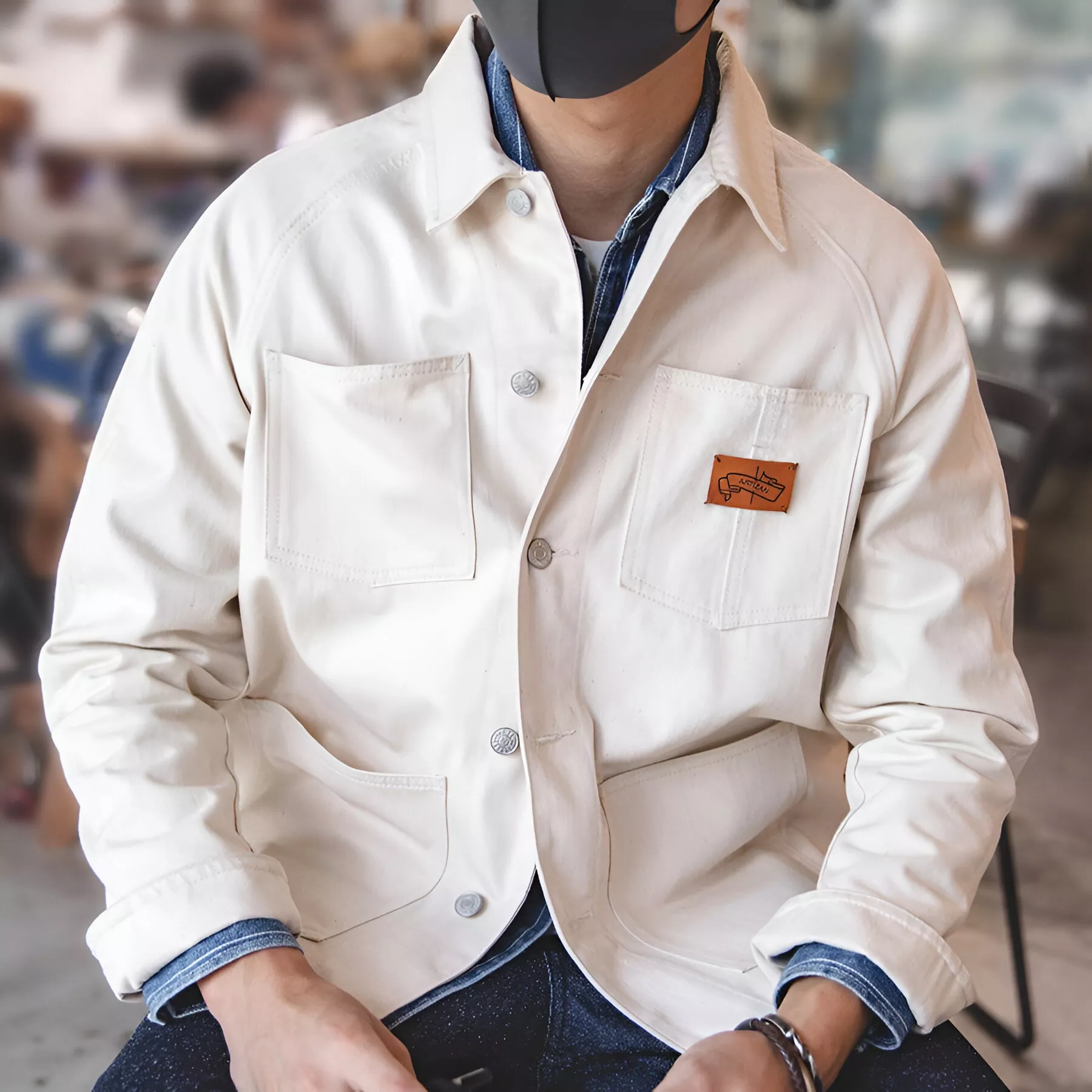 Add a touch of vintage elegance to your wardrobe with the Men’s Workwear French Vintage White Denim Jacket. Designed with a square neck, large functional pockets, and a relaxed fit, this jacket is the perfect blend of utility and style. Crafted from high-quality cotton twill fabric with a slight stretch, it offers durability and comfort, making it ideal for daily wear. Whether you’re heading out for a casual outing or looking for a stylish layering piece, this retro-inspired jacket delivers on all fronts.