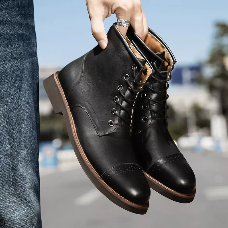The combination of premium materials, expert craftsmanship, and timeless design sets these boots apart. The genuine leather construction ensures durability, while the lace-up closure allows for a secure fit. The brogue details and sleek silhouette give them a sophisticated edge that transitions seamlessly from rugged to refined.