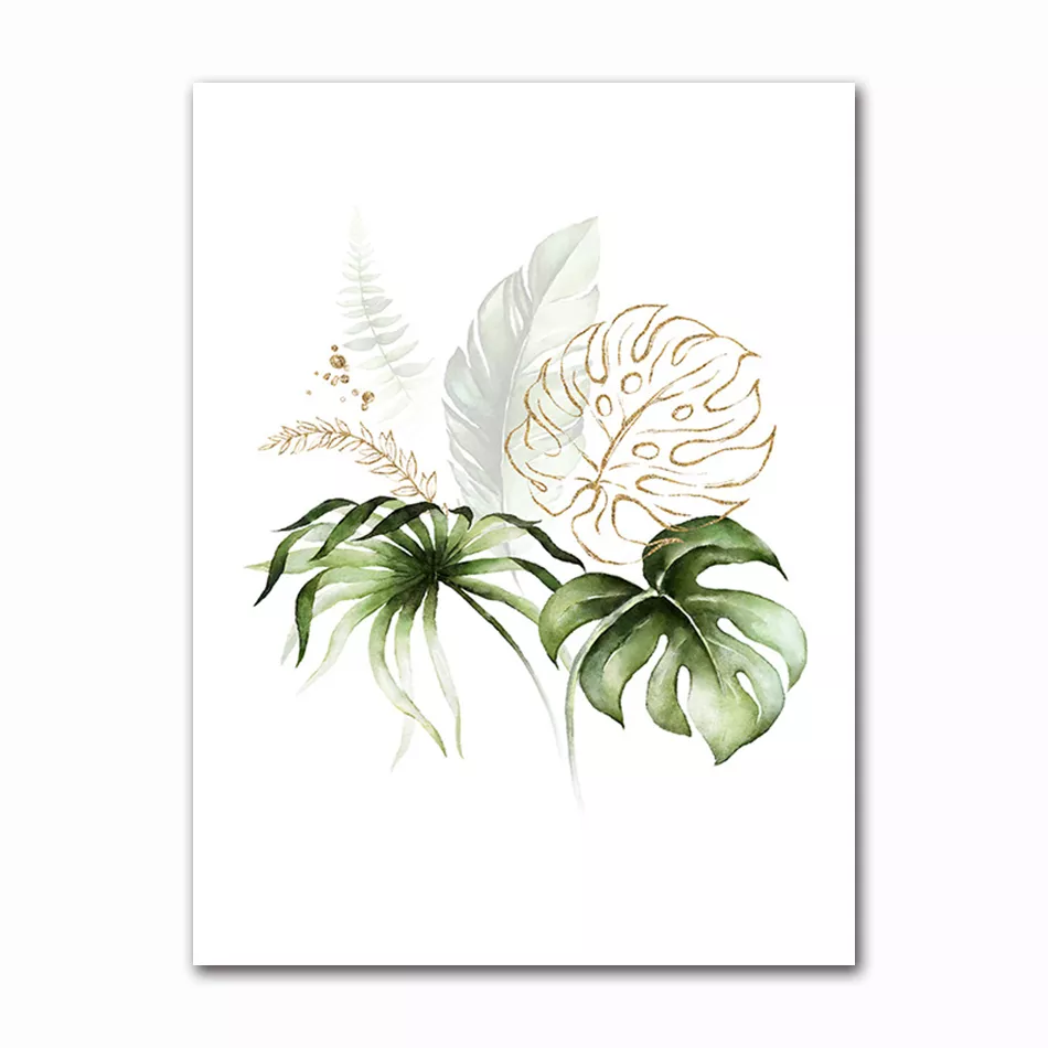 Modern Tropical Botanical Green Leaves Gold Floral Wall Art Canvas