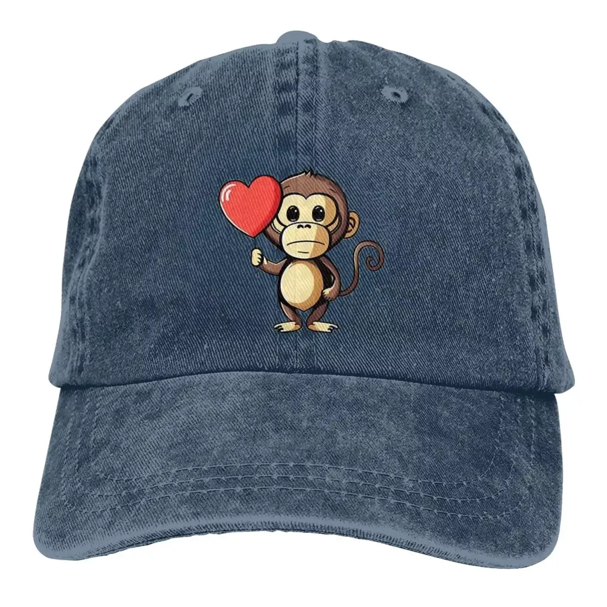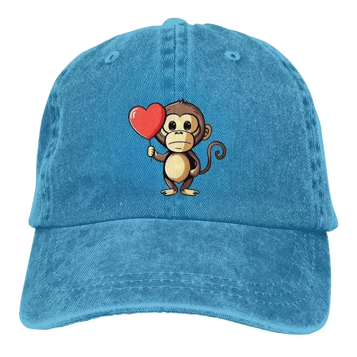 Show off your playful side and protect yourself from the sun in style with this Monkey with Balloon Heart Baseball Cap. Crafted from soft cotton and denim, this charming hat is designed for comfort and flair, making it the perfect accessory for any casual outfit. Whether you’re enjoying a sunny day at the park, running errands, or just hanging out with friends, this cap brings fun and fashion together. The adorable monkey graphic and heart-shaped balloon add a touch of whimsy, making this hat a conversation starter wherever you go!