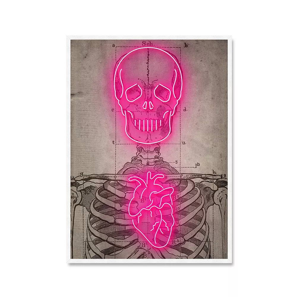 Whether you’re decorating your living room, bar, or office, the Neon Heart Skeleton Canvas makes a bold statement. Its unique combination of a glowing neon aesthetic and vintage design captures attention, creating a mood that’s both edgy and inviting. This piece is perfect for adding a touch of personality and flair to modern interiors or enhancing eclectic spaces.