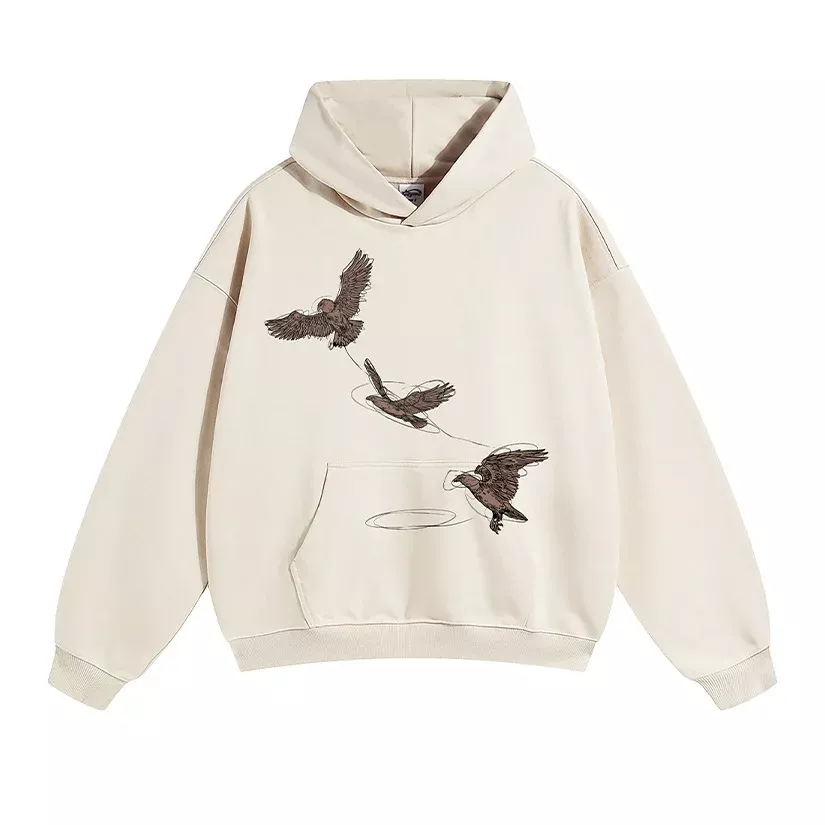 The loose-fit design and drop sleeves provide an on-trend oversized look, making it ideal for layering or wearing on its own for a casual yet chic vibe. The retro-inspired print adds a touch of personality to your outfit, making this hoodie a standout piece in your wardrobe. Whether you’re heading out for a walk, relaxing at home, or running errands, this hoodie adapts to your every need with ease.