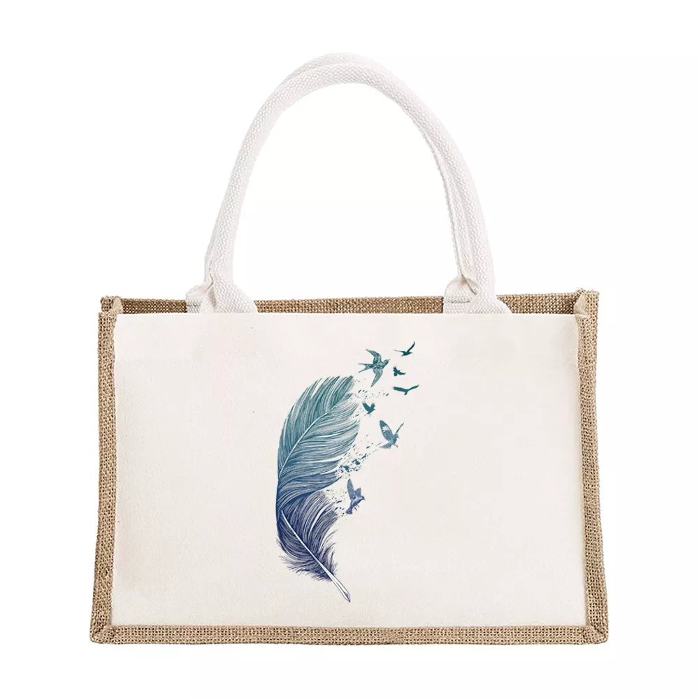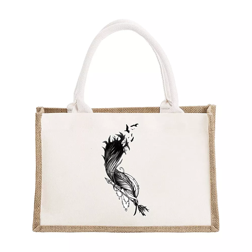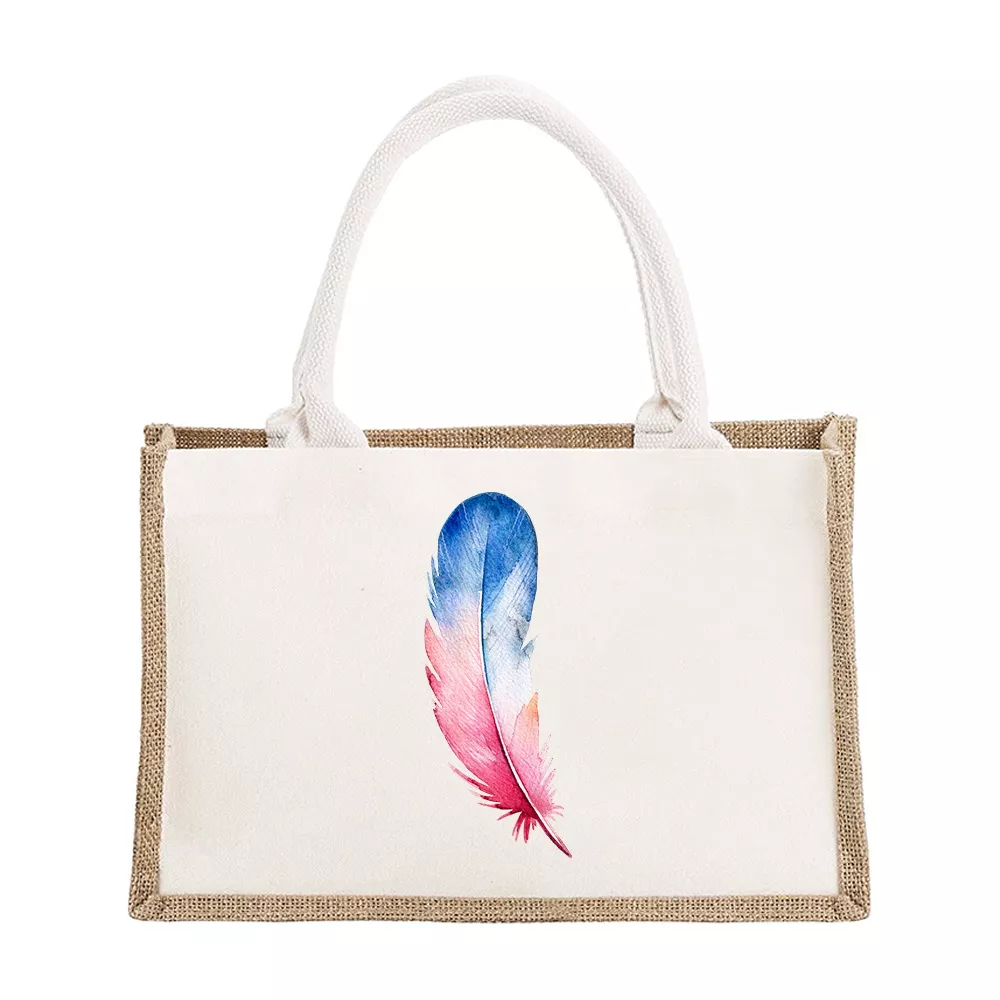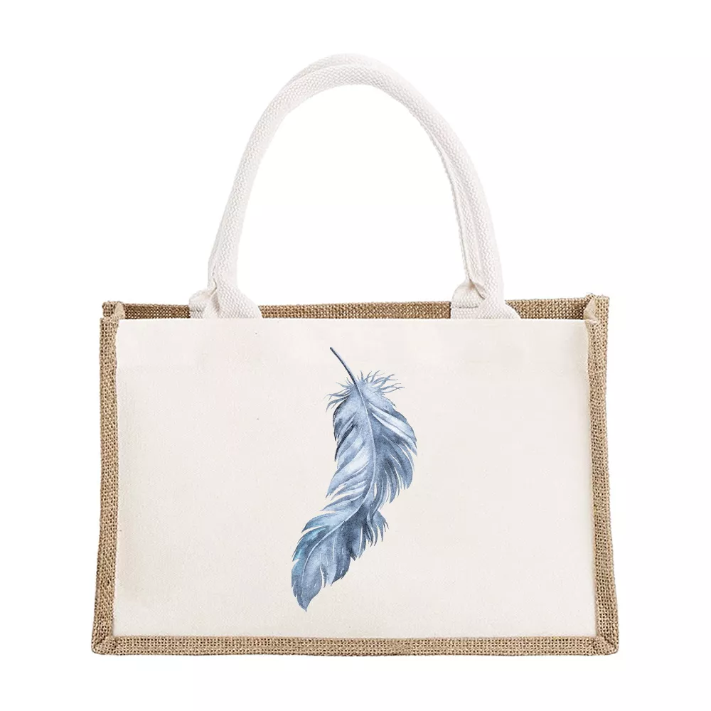 Personalized Burlap Canvas Tote Bags with Feather Print – Bridesmaid & Travel Gifts