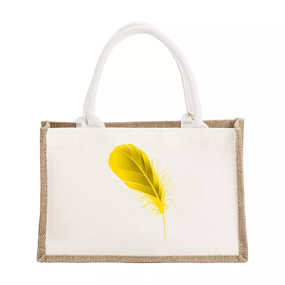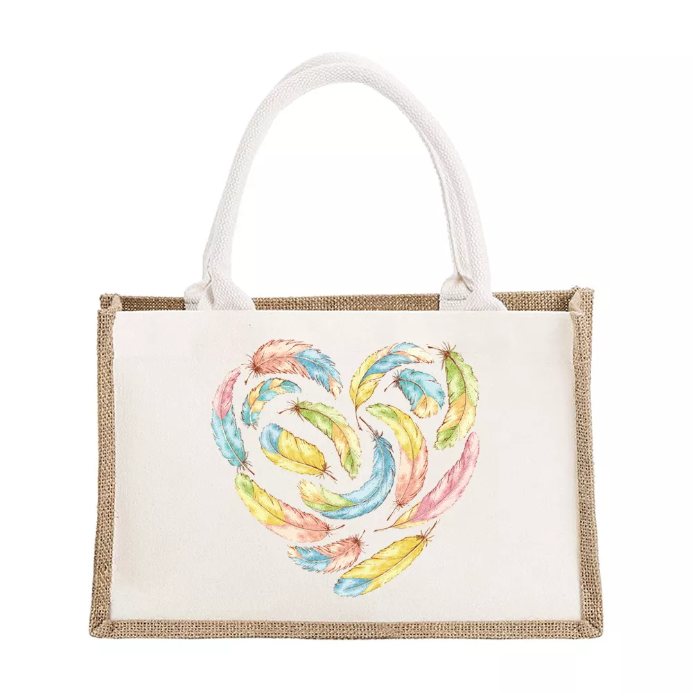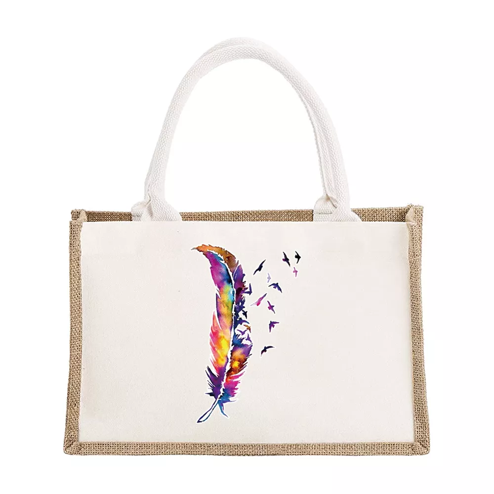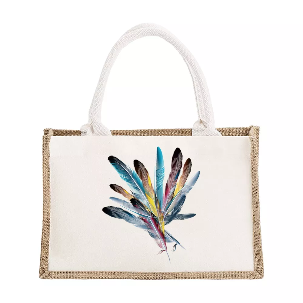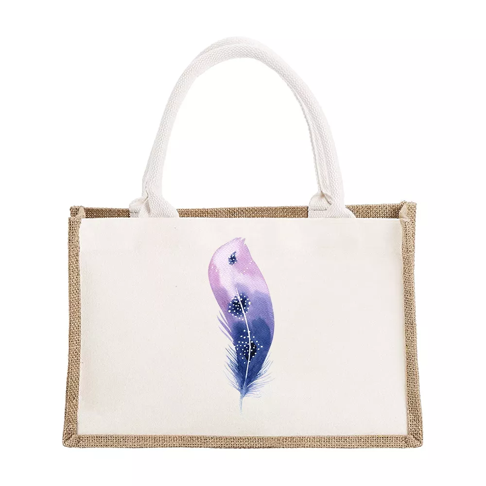 Personalized Burlap Canvas Tote Bags with Feather Print – Bridesmaid & Travel Gifts