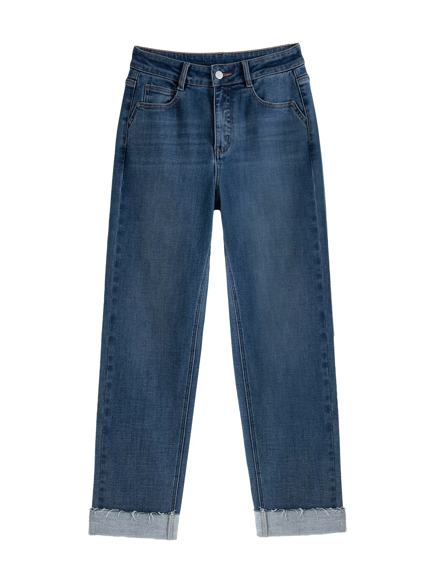 Designed with a flattering fit and timeless style, these baggy jeans offer more than just good looks. The medium stretch ensures all-day comfort, while the thin denim fabric keeps the look light and breathable. The rolled-edge detail creates a slimming effect, adding a modern twist to your everyday wardrobe. Pair them with sneakers for a laid-back vibe or dress them up with ankle boots for a polished finish.