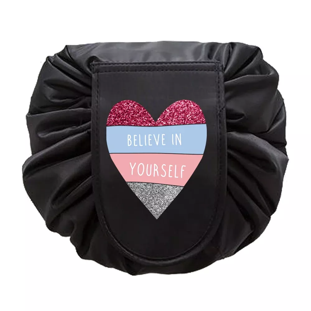 Stay organized and stylish on the go with this Portable Lazy Makeup Bag. Designed with convenience and functionality in mind, this drawstring storage pouch makes packing and accessing your beauty essentials easier than ever. The charming love print design adds a touch of elegance, making it a must-have accessory for travel, daily use, or as a thoughtful gift. Compact yet spacious, this cosmetic organizer is perfect for keeping your toiletries, makeup, and other essentials neatly stored.