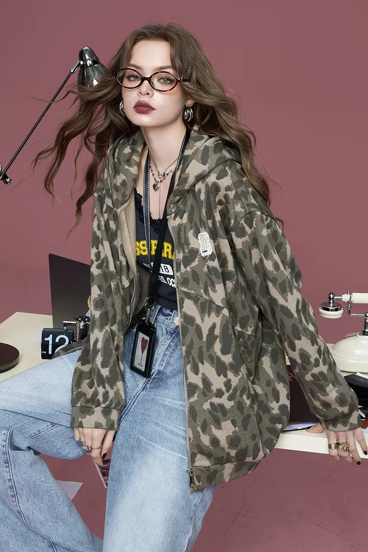This American retro leopard print hooded sweatshirt jacket combines effortless casual style with a touch of bold sophistication. Perfectly suited for winter, this jacket is a must-have addition to your wardrobe. Designed with a loose fit, it offers both comfort and a trendy look, ensuring you stand out wherever you go. Whether you’re out for a casual day or looking to add some flair to your office wear, this sweatshirt jacket has you covered.