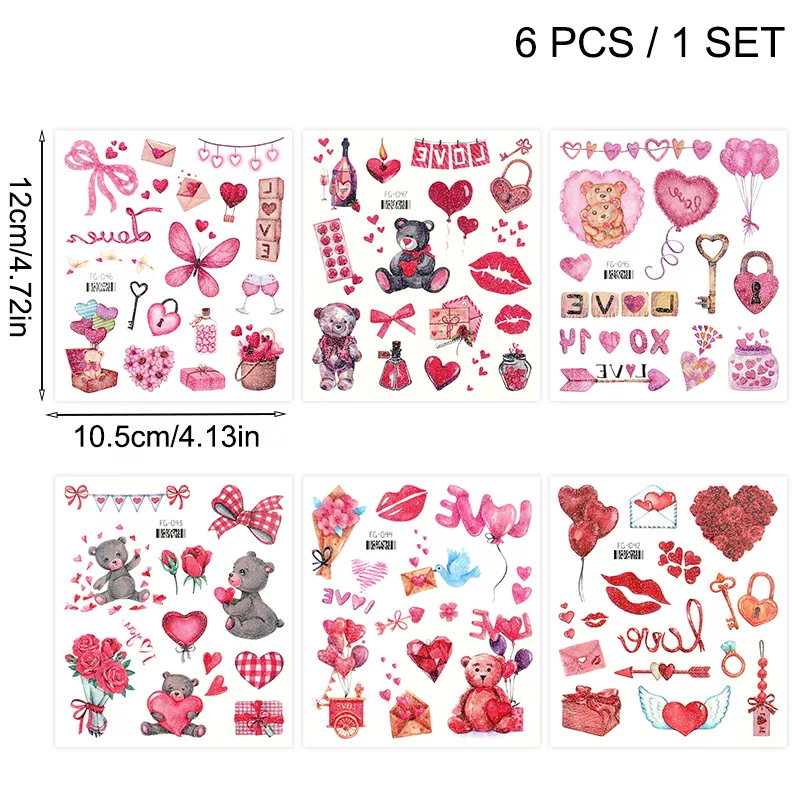 Don’t wait to add a spark of romance and creativity to your look. Order your 6 Sheets Valentine’s Day Temporary Tattoo Set now and get ready to dazzle at your next celebration. With their beautiful designs and effortless application, these tattoos are your must-have accessory for unforgettable moments.