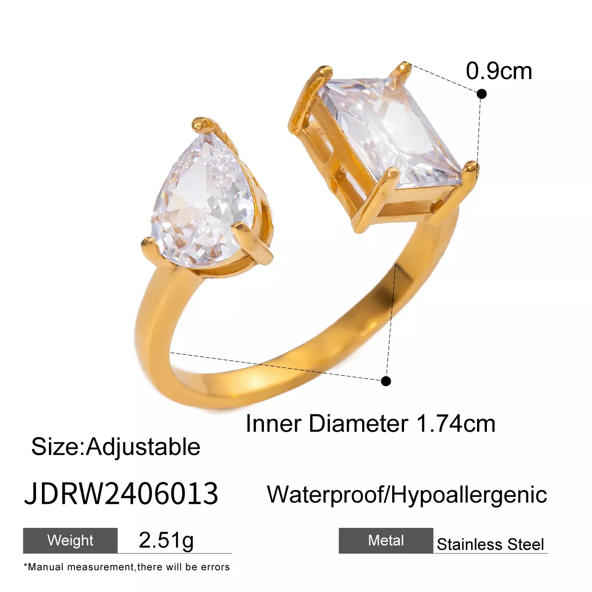 The Shiny Geometric Teardrop Zirconia Open Ring stands out with its impeccable craftsmanship and dazzling zirconia centerpiece. Its open-ring design offers a contemporary twist to traditional jewelry, while the geometric teardrop shape adds a touch of modern sophistication. Crafted from premium stainless steel, this piece is as durable as it is beautiful, ensuring it remains a staple in your jewelry collection for years to come.