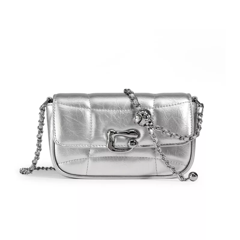 Step into sophistication with this silver chain crossbody bag. Whether as a treat for yourself or a luxurious gift for someone special, this bag offers unmatched style and functionality. Perfectly balancing elegance and practicality, it’s a timeless accessory that suits every occasion.