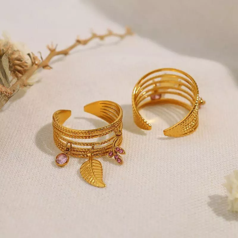 Chic Pink Crystal 18K Gold Plated Stainless Steel Cocktail Ring