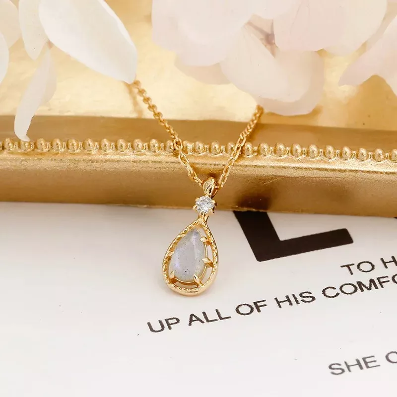 Delicate Labradorite Pendant Necklace with Sterling Silver and Gold Plating