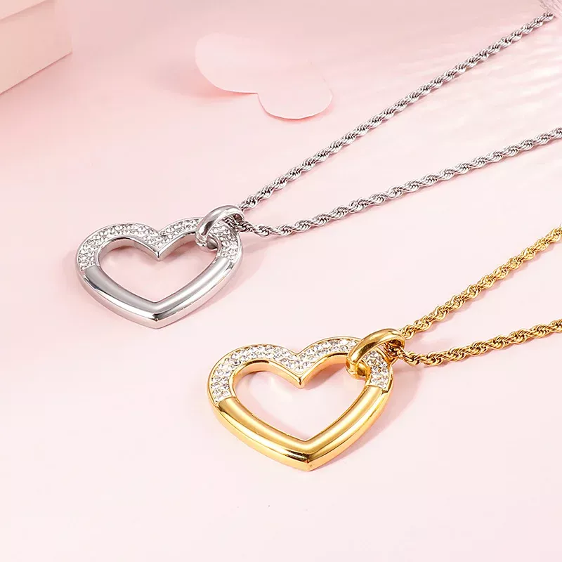 Stainless Steel Heart Pendant Necklace with Twisted Chain for Women and Men