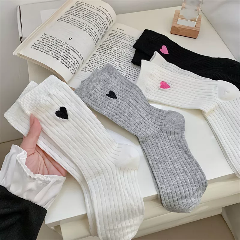 Women’s Thin Cotton Mesh Socks with Love Heart Embroidery for Casual Wear
