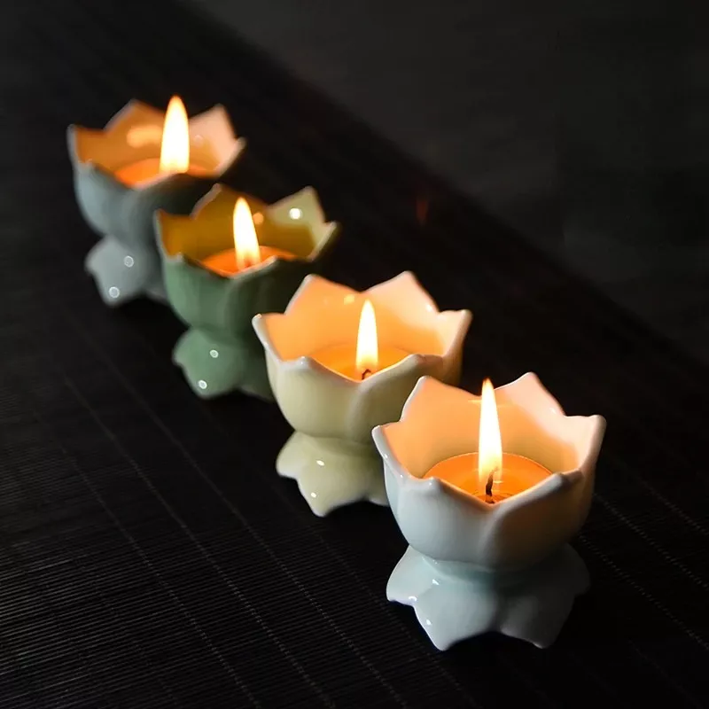 Celadon Lotus Ceramic Candle Holder Multifunctional Offering Home Ornament