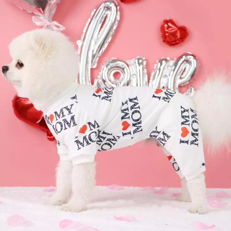 Adorable Dog & Cat Pajamas with I Love Mom & Dad Heart Print – Spandex Comfort