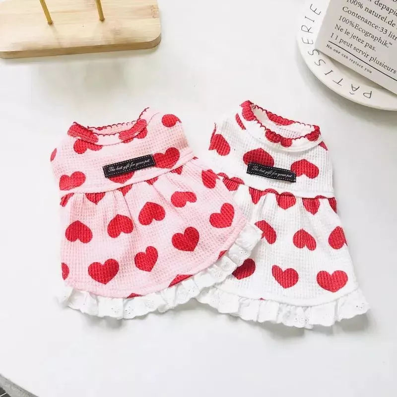 Cute Heart Print Dog Dress for Spring & Autumn – Perfect for Small Breeds