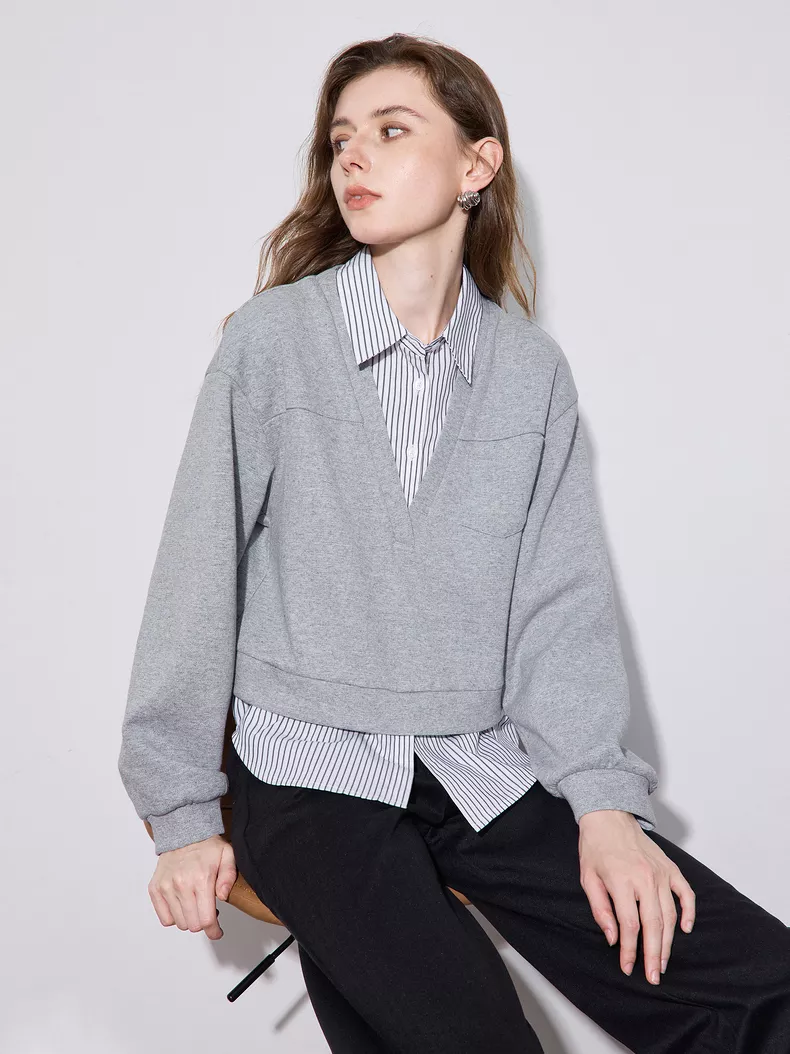 Stay Chic and Cozy with the Striped Two-Piece Look Sweatshirt