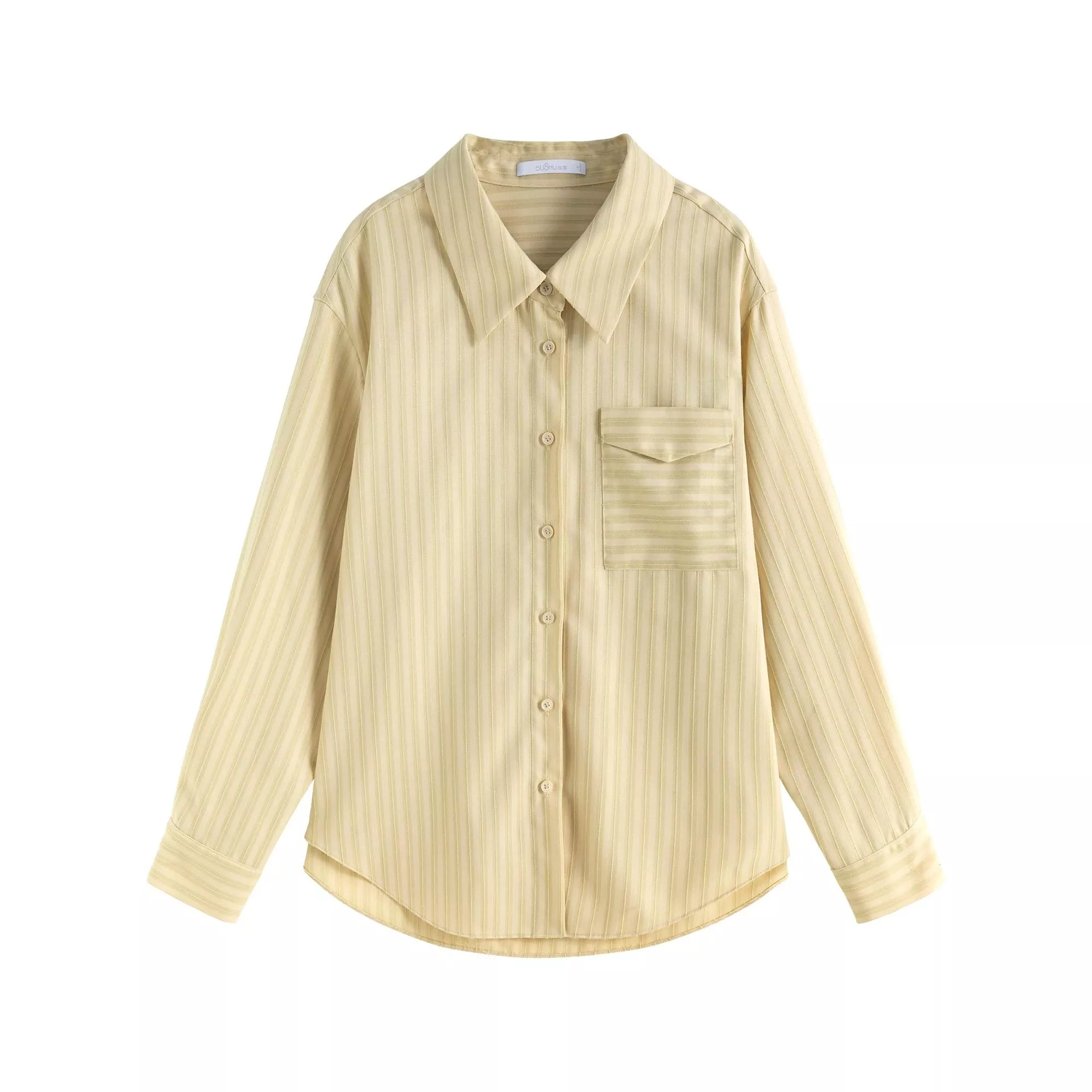 Step into timeless style and cozy comfort with this striped wide-shoulder retro long-sleeved shirt. Perfect for the office or casual outings, this top blends classic Japanese-inspired design with modern versatility. The lapel collar and textured chiffon fabric make it a sophisticated choice for the colder months, ensuring you look polished and feel comfortable all day long.