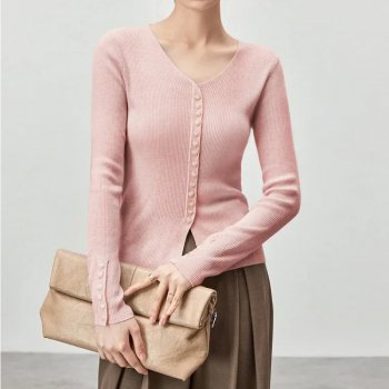 Simple Wool Knitted Cardigan for Women – Single-Breasted Long Sleeve Top
