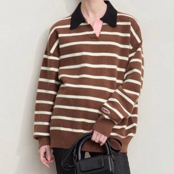 Minimalist Women’s Casual Striped Sweater with Turn-Down Collar