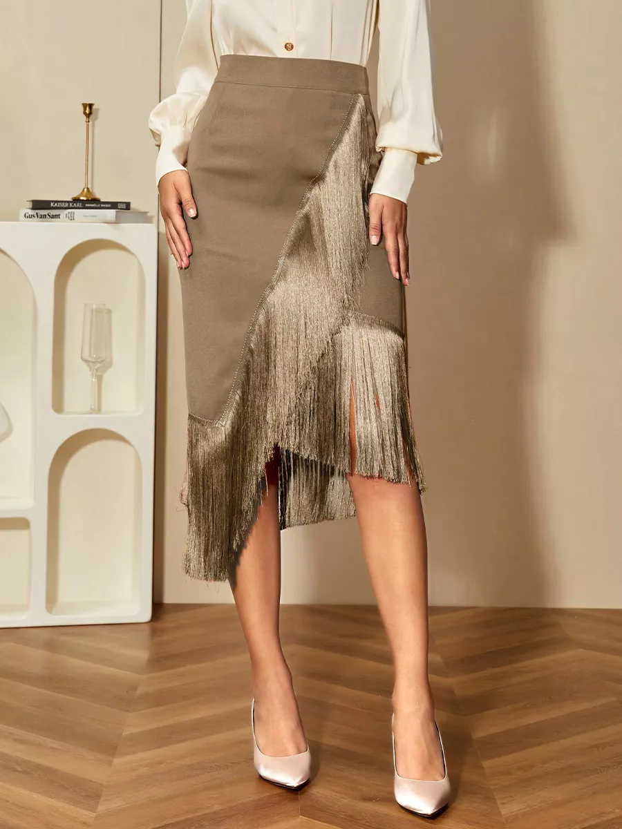 Elevate your wardrobe with this chic asymmetrical tassel skirt – the perfect blend of casual streetwear and sophisticated elegance. Designed for women who love to turn heads while staying comfortable, this high-waisted skirt will quickly become your go-to piece for effortless style. The flattering mid-calf length and unique wrap design offer a modern twist on a classic silhouette, making it a versatile addition to your seasonal collection.