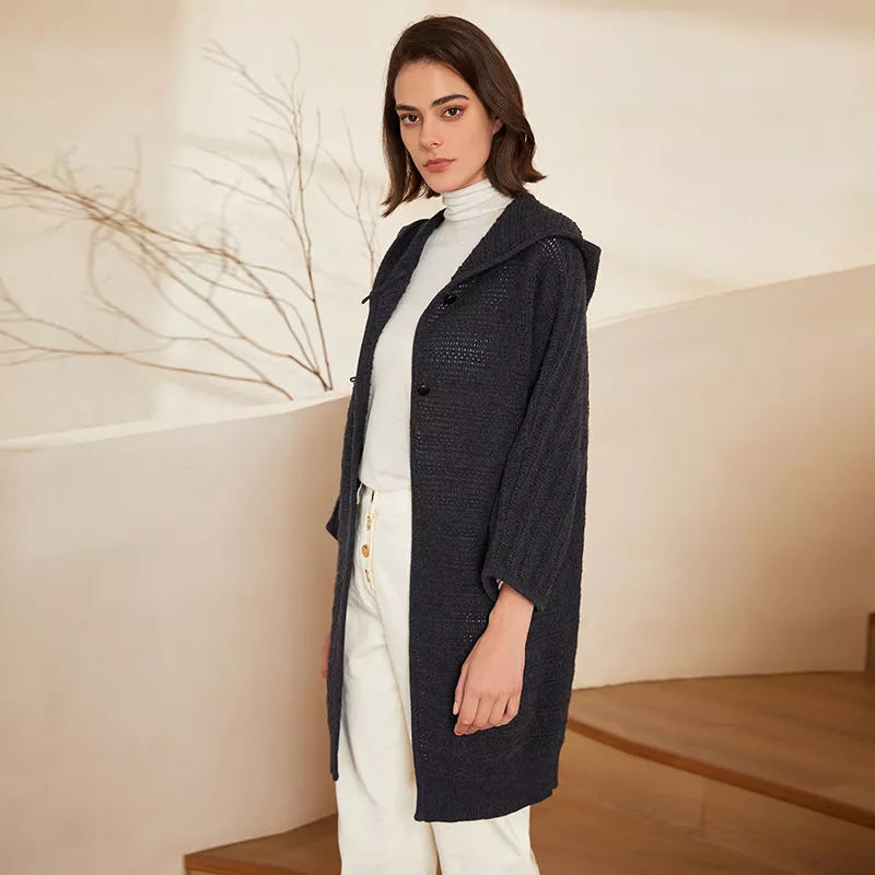 Not all cardigans are created equal, and this one stands out for its combination of comfort and style. The natural breathability and insulating properties of wool make it ideal for autumn and winter wear, keeping you warm without feeling bulky. The hood adds a modern twist, while the single-button closure gives it a polished yet casual vibe. With a slightly loose fit, it flatters various body shapes and sizes while offering unparalleled ease of movement. Perfect for women who value practical elegance, this cardigan will be your go-to choice for any cold-weather occasion.