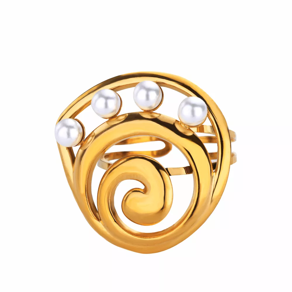 Add a touch of modern elegance to your jewelry collection with the Thread Pearl Wave Ring. This stunning piece is crafted from durable gold-colored stainless steel, featuring a wave-inspired design enhanced with a delicate pearl accent. Perfectly suited for weddings, parties, or as a thoughtful gift, this ring combines sophistication and versatility, making it a must-have accessory for any occasion. Whether worn alone or stacked with other rings, it’s a timeless piece that complements any outfit.