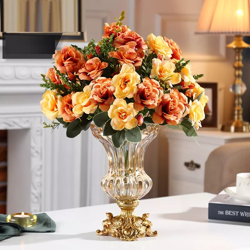 American Retro Gold and Cream Ceramic Vase for Elegant Flower Arrangements
