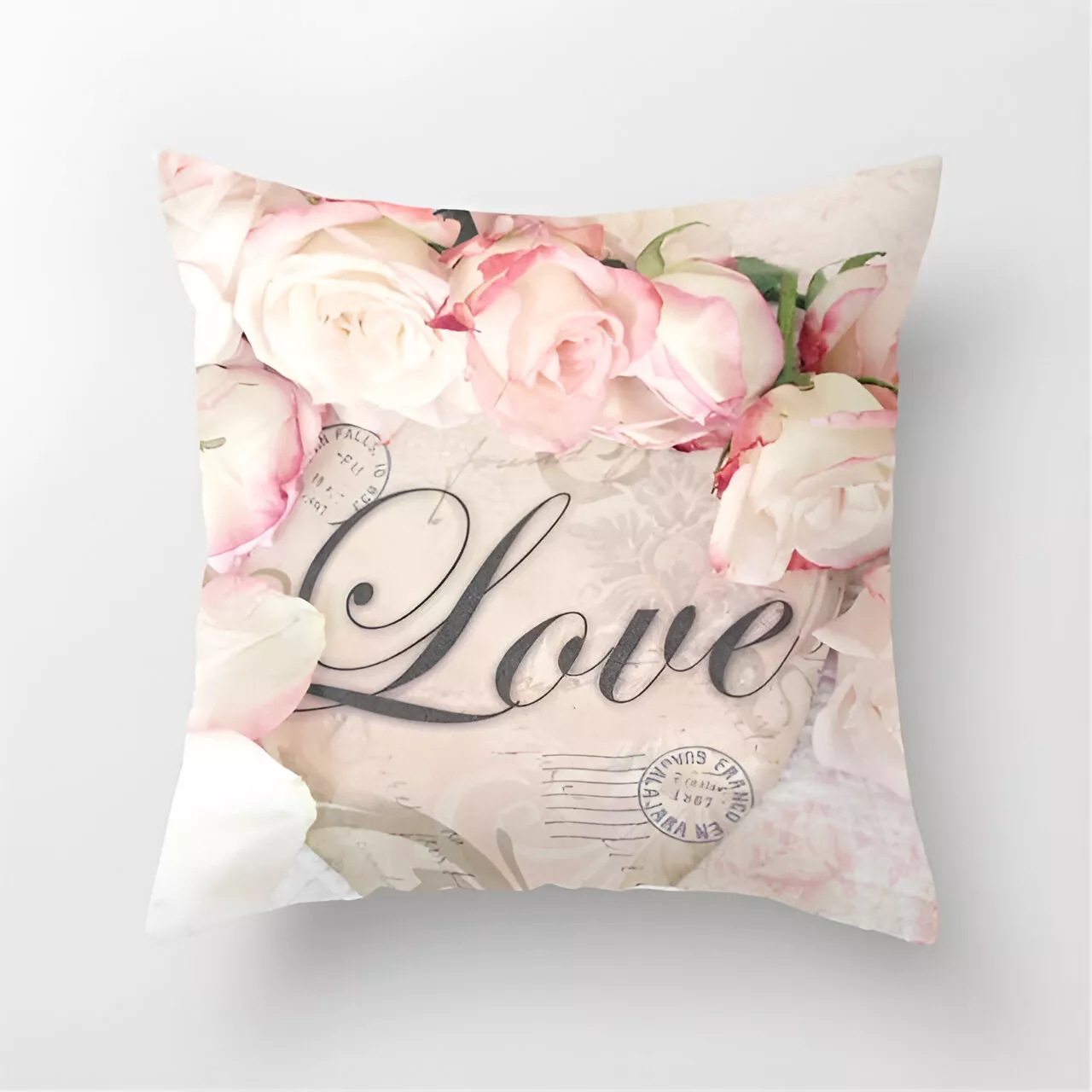 Nordic Style Decorative Rose Print Pillow Cover for Home Wedding and Sofa
