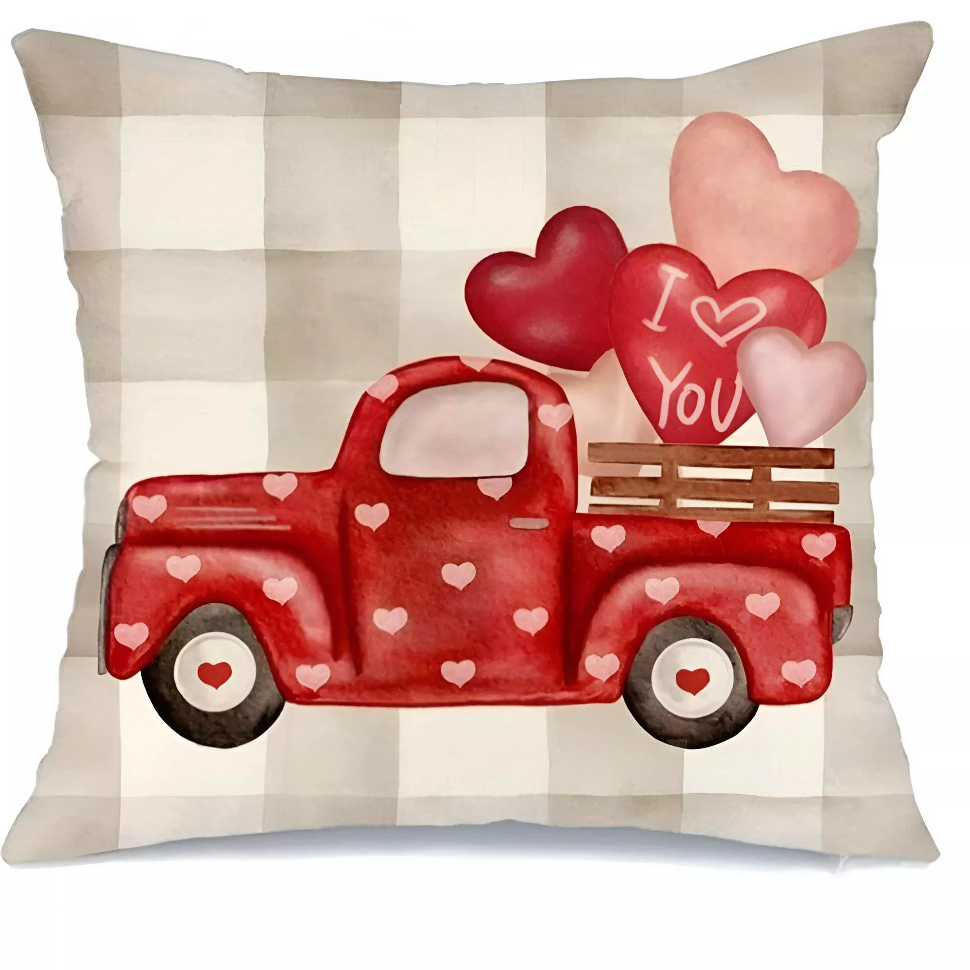 Add a touch of romance to your home this Valentine’s Day with our stunning pillow cover. Featuring a charming truck and heart pattern design, this decorative pillowcase is perfect for creating a cozy and loving atmosphere in any space. Whether you’re sprucing up your living room, bedroom, or sofa, this pillow cover will bring warmth and elegance to your home.