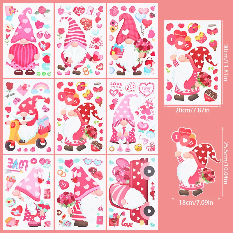 Celebrate Valentine’s Day with a dash of whimsy and romance! These delightful Valentine’s Day Window Stickers featuring adorable cartoon gnomes, heart shapes, and loving messages are the perfect way to decorate your home, wedding venue, or party space. Crafted with attention to detail, these decals transform plain windows into festive displays that radiate warmth and affection.