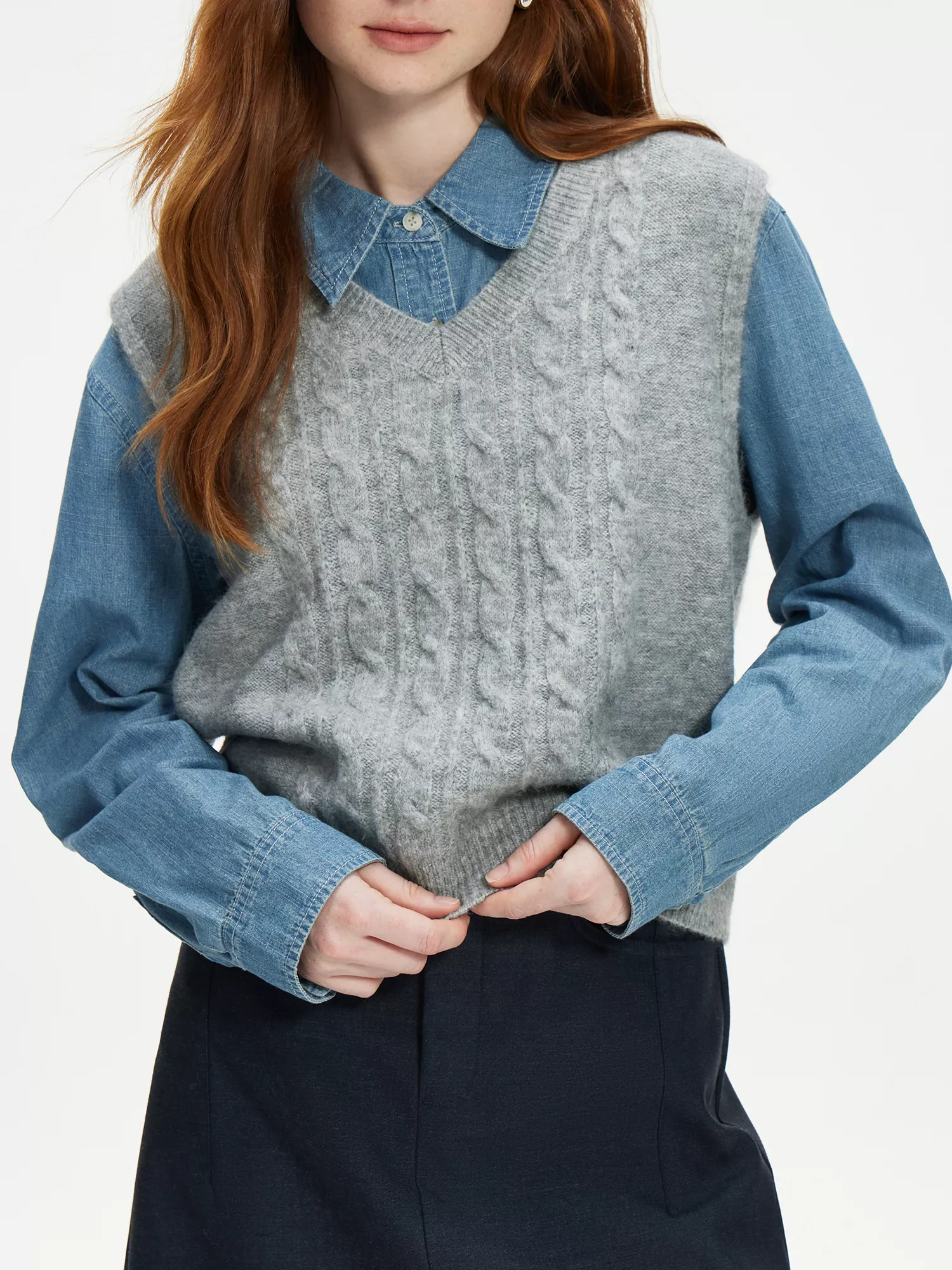 This sleeveless knitted vest stands out with its perfect blend of comfort and elegance. The fabric’s slight stretch offers flexibility and movement, making it ideal for layering over shirts, dresses, or even wearing alone as a stylish top. With no excess decoration, the design is sleek and modern, adding a sophisticated touch to any look. The breathable, soft material keeps you warm without being bulky, making it ideal for layering during the colder months.