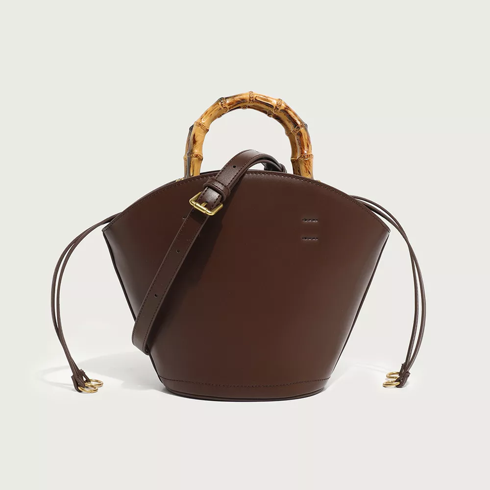 The ZR DIARY Bucket Bag offers a spacious interior with a stylish exterior, making it both fashionable and practical. The single shoulder strap ensures comfortable carrying, while the unique bamboo detail gives the bag a distinct vintage flair. Available in three rich colors—black, brown, and coffee—this handbag complements a variety of looks and occasions.