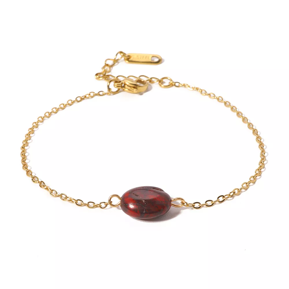 This bracelet stands out with its blend of vibrant natural stone and polished stainless steel. The link chain design adds a contemporary edge, while the red stone creates a touch of vintage elegance. It’s more than just jewelry—it’s a statement of timeless beauty and modern craftsmanship.