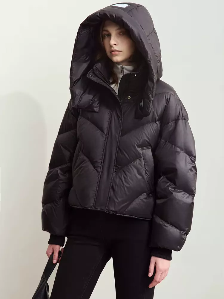 What truly sets this down coat apart is its combination of insulation and lightweight design. With 85% white goose down filling, it’s incredibly warm, yet light enough to ensure comfort throughout the day. The hood and full-zip closure make it practical and easy to adjust for different weather conditions, while the functional pockets offer convenience without compromising style. The relaxed, loose fit is flattering on a variety of body types, giving you freedom of movement while still looking chic. Whether you’re on your way to the office or simply running errands, this coat makes winter dressing effortless and fashionable.