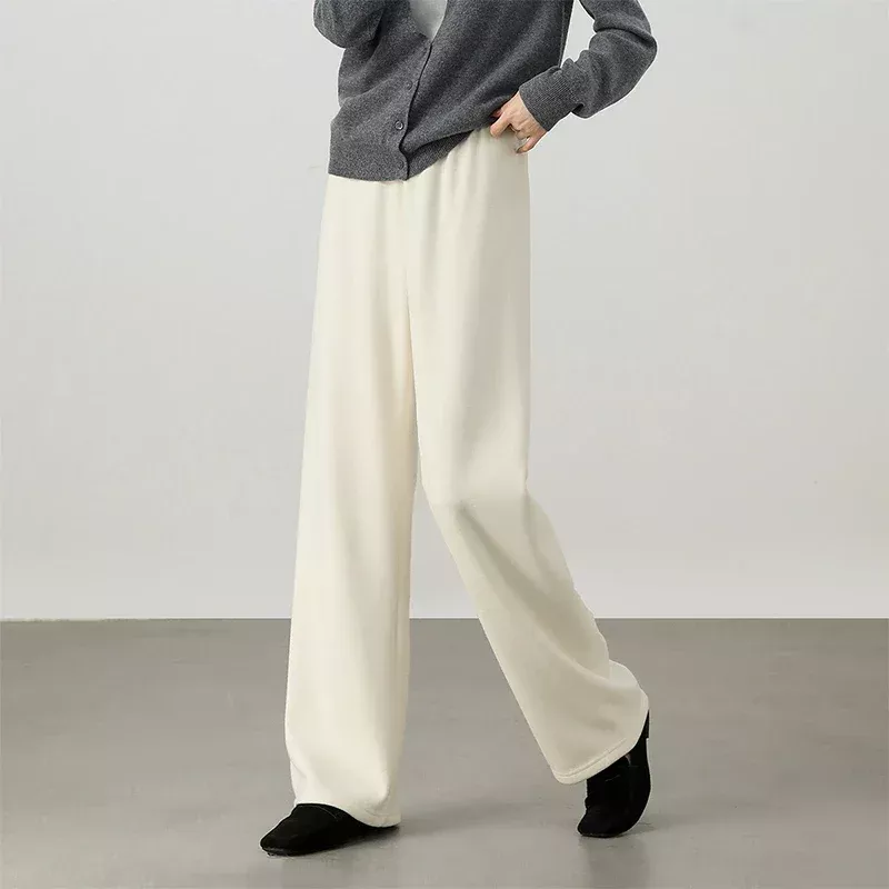 What sets these Winter Pants apart is the thoughtful design that prioritizes both comfort and style. The fleece lining provides warmth, while the high-waist and straight-leg silhouette ensure a flattering fit. The pants are easy to wear with their elastic waistband, and the relaxed yet polished look makes them perfect for both casual and semi-formal settings. The fabric mix also offers durability and flexibility, allowing you to move freely throughout your day.