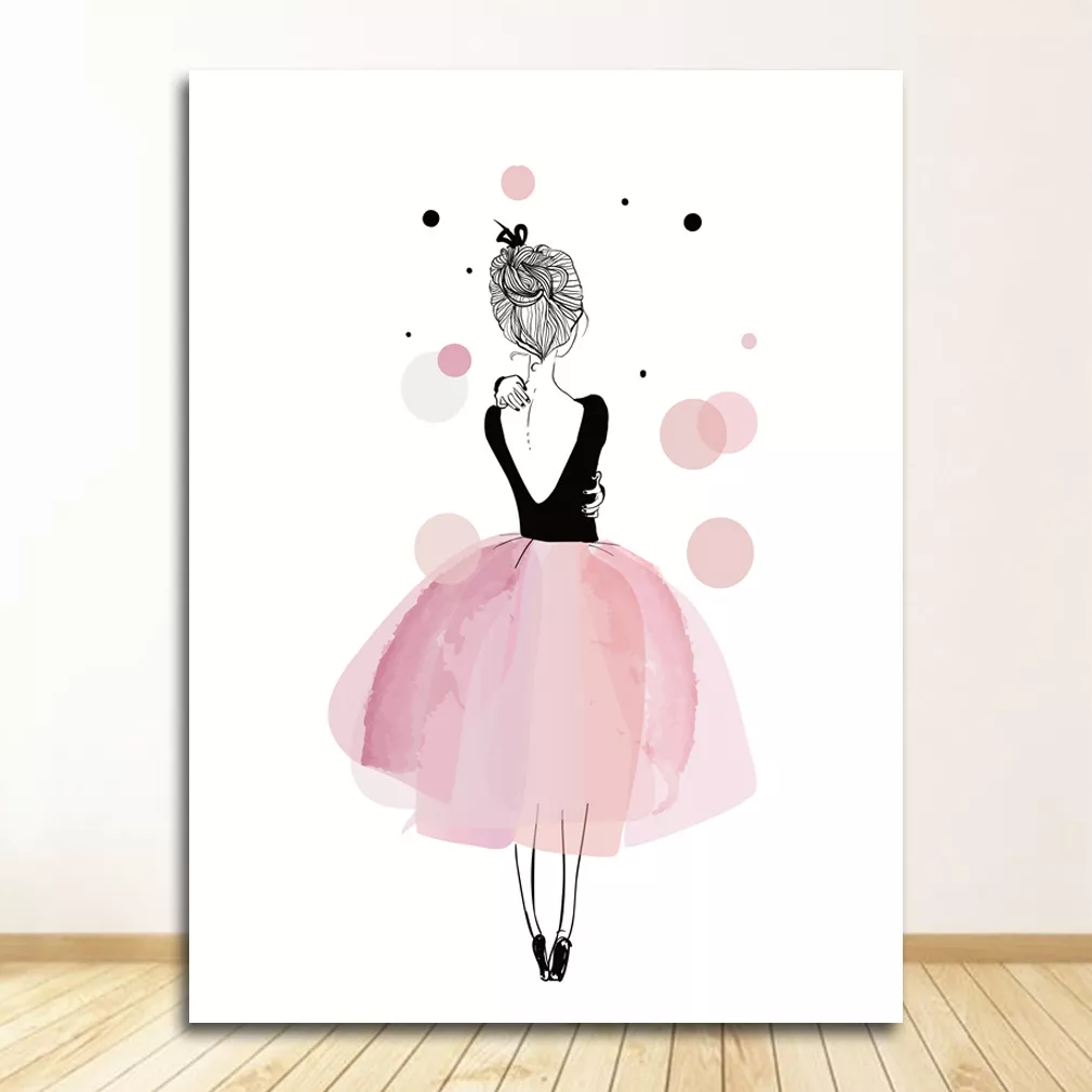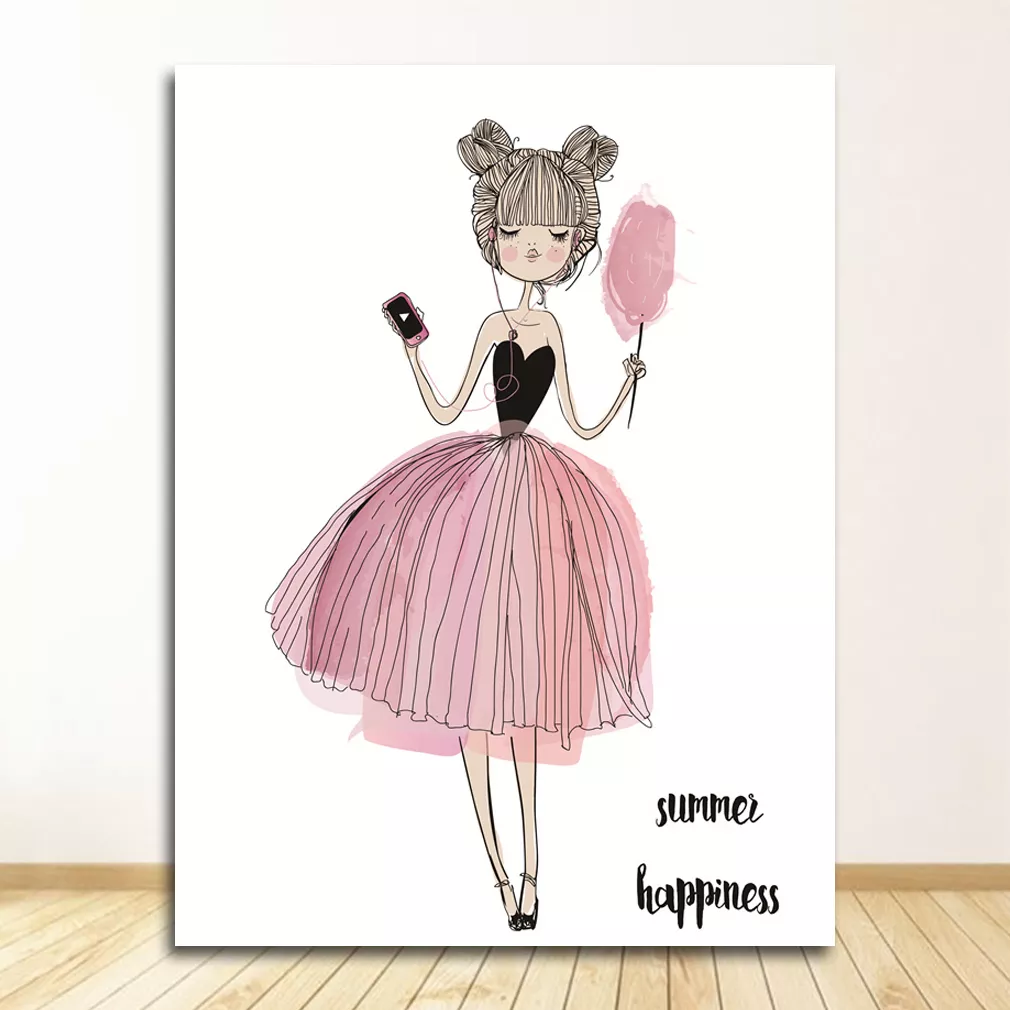 Watercolor Pink Kawaii Girls Nursery Wall Art Canvas Decor